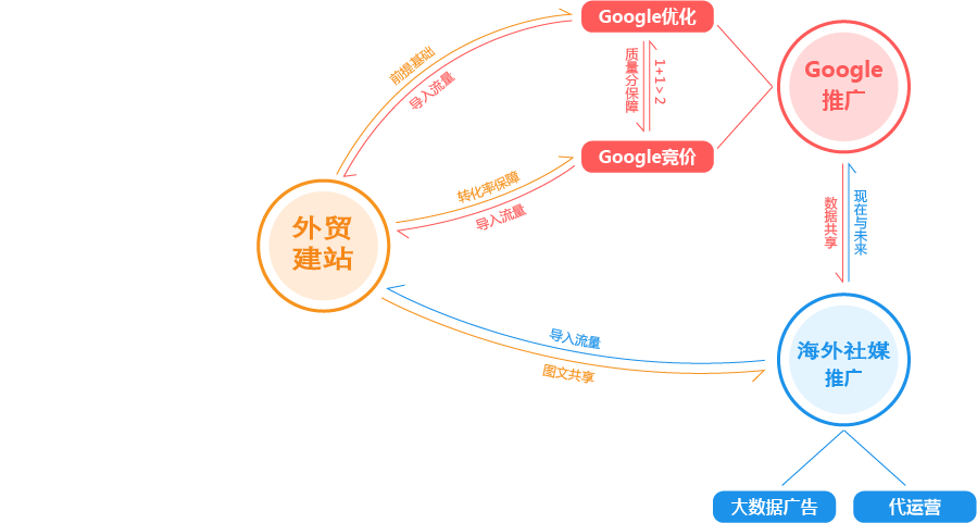 南京外贸推广公司为您提供全面的“整合”方案,为您的企业提供全生命周期的精细化服务和咨询。为此,我们搭建了从广告投放到SEO优化,从内容运营到网站开发,从品牌策划到电商运营的近100人的团队,组成了一家集全球渠道资源、人才资源、技术资源为一体的数字营销机构,为您一站式解决出海难题,实现品牌全球推广!